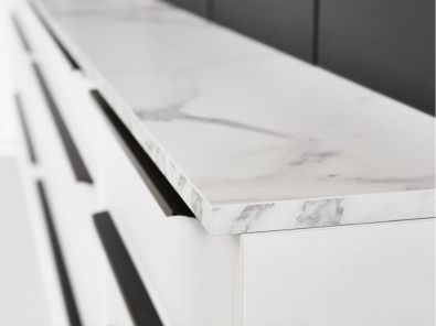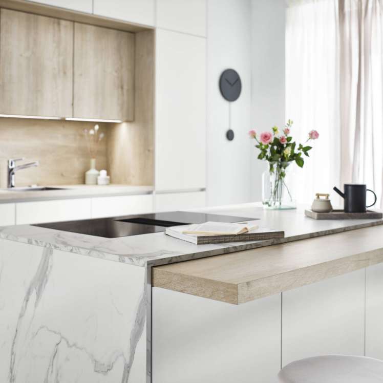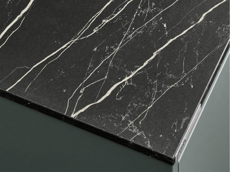Trendy materiaal voor keuken en bad: Onze gepatenteerde Xtra Ceramic werkbladen overtuigen met hun natuurlijke optiek en bijzondere bruikbaarheid. Het Xtra Ceramic werkblad wordt geleverd in een innovatieve constructiemethode. Het werkblad, dat in totaal 16 millimeter dik is, bestaat uit 6 millimeter dikke, massieve keramiek op een 10 millimeter lichtgewicht steunlaag van gerecycled glas.