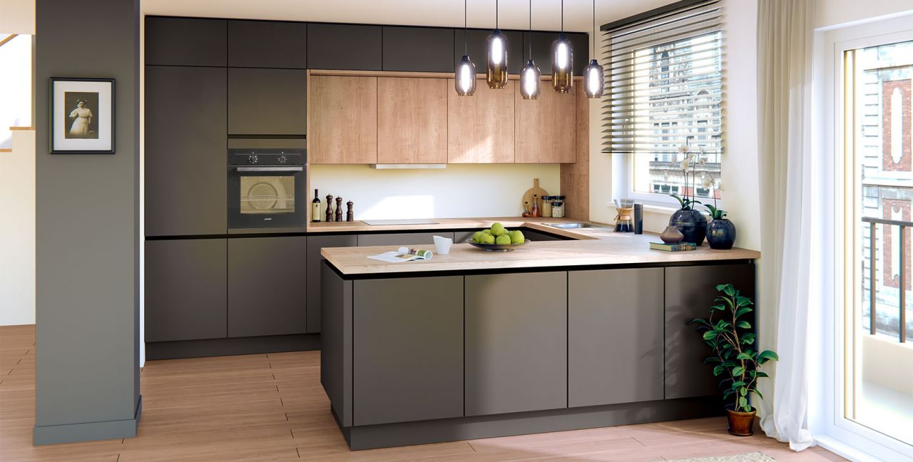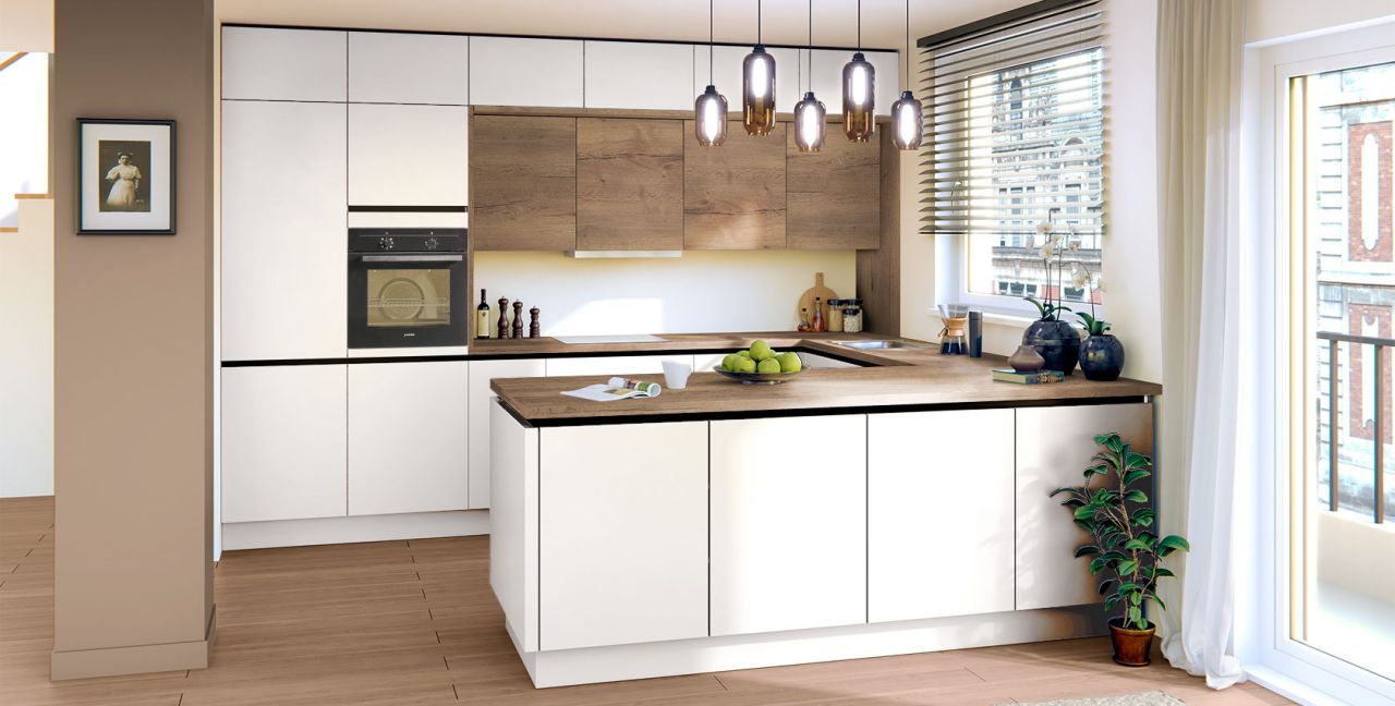 Inclusief inbouwoven zwart Junker JF1300061 Energieklasse A, keramische kookplaat Siemens ET645HN17E, platte afzuigkap Elica ELITE 14 60-D Energieklasse D, koelkast Laurus LKG88E Energieklasse E, volledig geïntegreerde vaatwasmachine Laurus LSV60-4 Energieklasse E, inbouw-designspoelbak Elleci Logik 300, XL-kasten, onderkast met uittrekinterieur.