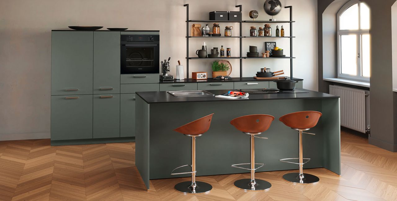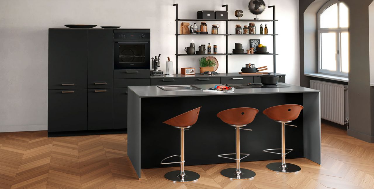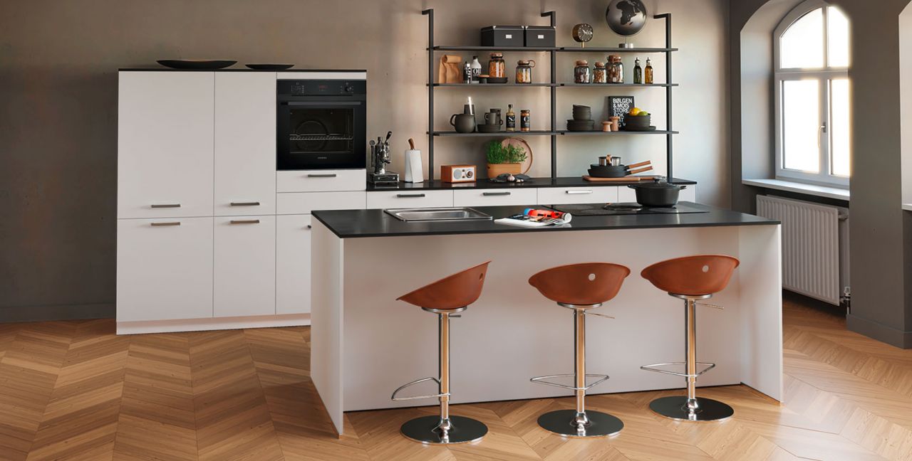 Inclusief inbouwoven zwart Siemens HB234ABB3 Energieklasse A+, keramische kookplaat met inductie en werkbladafzuiging (circulatielucht) Bora GP4U, koelkast Laurus LKG88E Energieklasse E, volledig geïntegreerde vaatwasmachine Laurus LSV60-4 Energieklasse E, RVS-inbouwspoelbak Rodi NewManaus, servieskast, plankenreksysteem, eetbar, XL-kasten.