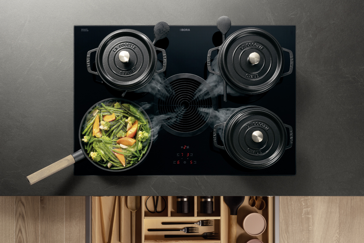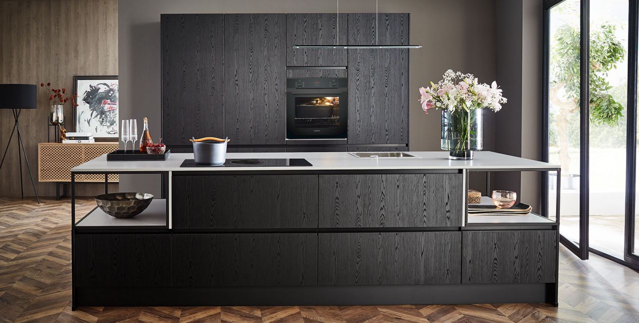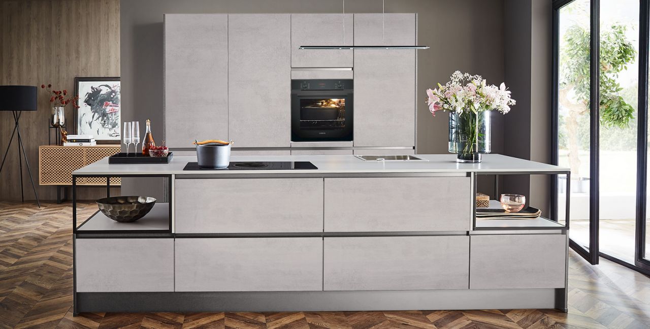 Inclusief inbouwoven zwart Siemens HB234ABB3 Energieklasse A+, keramische kookplaat met inductie en werkbladafzuiging (circulatielucht) Bora GP4U, koelkast Laurus LKG88E Energieklasse E, volledig geïntegreerde vaatwasmachine Laurus LSV60-4 Energieklasse E, RVS-inbouwspoelbak Rodi BOX LUX 46, onderkasten met grote laden, open kasten Smartcube.
